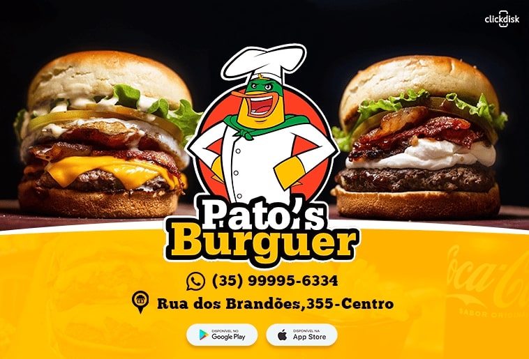 Com um hambúrguer artesanal delicioso, uma batatinha chips que é sensacional o Pato´s Burguer inova a cada dia, com lanches inovadores e com um preço em conta. Pato´s Burguer, o melhor hambúrguer artesanal de Passos e região!